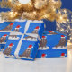 Este papel de embrulho espetacular mostra uma imagem gráfica de uma linda e pequena Walrus de Natal. A Walrus tem pelo marrom com olhos pretos grandes e presas brancas. Está sentado num icebergue no meio do oceano e vestindo um chapéu festivo vermelho e branco. A morsa está cercada por bonito flocos de neve azuis octogonais que caem ao redor dela.