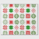 Este papel de embrulho tem uma design de Natal com diferentes flocos de neve em vermelho e verde em filas.