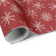 Este papel festivo de embrulho de Natal mostra design de floco de neve com fundo vermelho. Papel elegante para o seu embrulho de presente.