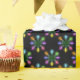 Corda de luz colorida de Natal em padrão de floco de neve em fundo preto.