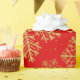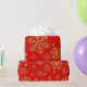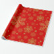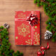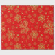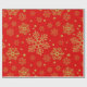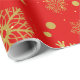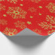 Design de Natal com flocos de neve ouros e estrelas em fundo vermelho