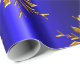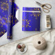 Um papel colorido, elegante, embrulho de Natal, com um padrão festivo de flocos de neve ouros (ou estrelas) sobre um fundo azul vivo e real para adicionar um toque especial de designer ao seu presente embrulhando estes feriados.