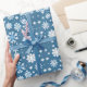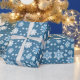 Papel De Presente Flocos de neve repetindo padrão branco azul