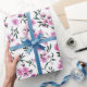 Galhos brancos florescentes pintados com aquarelas e tinta em fundo rosa
