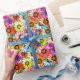 Imagem de flores coloridas de gerbera em amarelo, roxo e rosa. Um vibrante design floral de lindas flores de jardim.