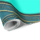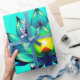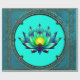 Flor de Elegância, Lotus Místico. A flor de lótus é simétrica e extremamente detalhada, com suas pétalas em tons harmoniosos de lacre, azul e verde. O centro amarelo brilhante da flor adiciona um sotaque vibrante e destaca sua posição central. A design combina a beleza natural com a decoração de ornamentados, criando uma imagem harmoniosa e elegante que é simultaneamente moderna e tradicional.