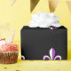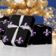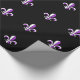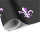 O teste padrão roxo e branco corajoso da flor de lis no fundo preto faz a isto um grande envoltório para todas as ocasiões.