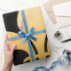 Uma flor de lis simples do ouro adiciona um acento agradável a este papel de envolvimento.