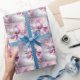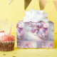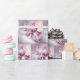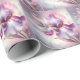 Flor da íris, rosa e roxa, com detalhes intrincados em ouro e adornada com gotas de orvalho