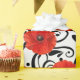 Um interessante contraste entre uma flor real vermelha de papoila e uma decoração floral branca e preta de vidro. florenceK