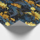 Papel De Presente Florais ouros Azul Escuro Deixa Preto Fundo