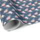 Este design floral rosa e branco sobre um fundo azul marinho faz um papel de embrulho muito bonito