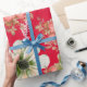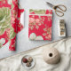 Papel de embalagem floral de cor verde-vermelha com detalhes bonito de prados de flor silvestre de vassoura-vassoura com elegante cor d'água flores silvestres, perfeito para feriado, primavera, outono ou embalagem de presente de outono.