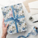 Placas de festas de papel floral azul Elegante de Natal. Belo padrão para aquela ocasião especial. Um tema de inverno de tons azuis e neutros.