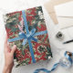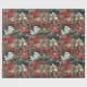Papel De Presente Floral de Natal Tradicional Vermelho e Pinecone
