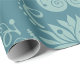 Floral teal wallpaper with light blue ornate patterns; shown unrolled and flat. Elegant design evokes a calm, sophisticated atmosphere.