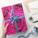O papel de embrulho para celebração com um belo padrão de rosa cor-de-rosa é apresentado neste papel de presente.