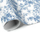 O Floral Toile Elegance Wrapping Paper apresenta intrincados florais azuis em branco, acrescentando sofisticação do eterno a casamentos, aniversários ou bronzes de luxo.