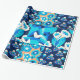PAPEL DE PRESENTE FLORES AZUIS DE HAWAII BRANCOS PATCHWORK FLORAL NE