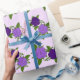 Papel De Presente Flores Azuis e Roxas com padrão violeta