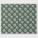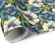 Papel De Presente Flores Azul Escuro e Branco