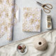Celebre o seu casamento, aniversário, chá de noiva ou aniversário com este lindo design floral branco e dourado, apresentando flores com suas pétalas abertas e rodeadas por belos ramos e um fundo branco. Este padrão inspirado em flores de verão e primavera também é adequado para projetos de decoupage. Transforme o ordinário em espetacular com este papel de presente atemporal e elegante.