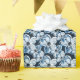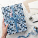 Papel De Presente Flores brancas e azuis sobre fundo preto.