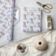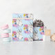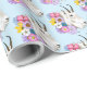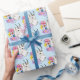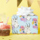 Um retrato de perfil lateral de uma cabra branca de montanha. Flores selvagens estão por toda a montanha desenhada num estilo de tatuagem num pano de fundo azul