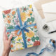 Papel De Presente Flores de Dália de Primavera Laranja Pastel Amarel