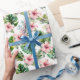 Papel De Presente Flores de Hibisco Rosa Tropicais
