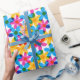 Adicione um toque brilhante a qualquer presente com este papel embrulhado com padrões. Ele tem um estilo retrô com flores hippie margaridas sobrepostas em amarelo brilhante, azul e magenta cor-de-rosa. Os gráficos desenhados à mão são projetados para imitar a impressão em estilo risógrafo clássico.estilo retrô com flores de margarida hippie em amarelo brilhante, azul e magenta cor-de-rosa.
