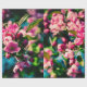 Flores de macieiras de caranguejo rosa e roxo em primavera. A estação florescente no jardim ou no pomar. Cena floral botânica colorida e vibrante. Impressões e presentes para diversão e bom humor
