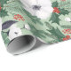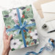 Papel De Presente Flores de Natal brancas e padrão de bagas vermelha