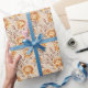 Ouro e rosas laranja lindos e incríveis com cobrir de folhagem em tons de sépia neste papel de embrulho. Rico e luxuoso, com um talento no Velho Mundo.