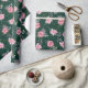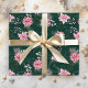 Papel De Presente Flores de Poinsettia Rosa em Verde Escuro