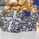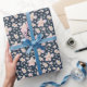 Papel De Presente Flores de primavera em azul escuro