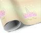 Papel de embrulho de presente com flores e estrelas de unicórnio em tons dourados.