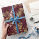 Papel De Presente Flores Douradas abstrato em Vermelho