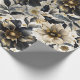 Padrão de flores elegantes e sofisticadas em preto e branco com toques de dourado