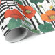 Este papel de embrulho atraente apresenta flores laranja, azuis e brancas vibrantes, colocadas contra listras brancas e pretas chic e bolinhas lúdicas — perfeito para fazer dos seus presentes pop com personalidade e charme.
