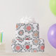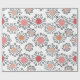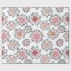 Este papel de embrulho tem um médio de flores moderno século design, feito de círculos em tons de rosa, amora e bege e linhas pretas.