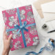 Papel De Presente Flores Monocromáticas em Fundo de Cerise Giftwrap