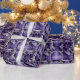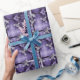 Papel De Presente Flores prateadas em roxo e preto