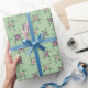 Papel De Presente Flores roxas geométricas de cor verde