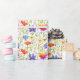 O papel de enrolamento em flores silvestres de cor Brilhante, em várias formas e tamanhos, está espalhado sobre um fundo branco. As pétalas vibrantes variam de roxo profundo e azul a laranja vívida e amarelo.