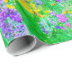 Papel embrulhado em um padrão de esboços de giz pastel de flores silvestres espalhadas, no verão, em um campo de gramíneas verdes de prados