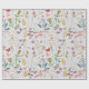 Um padrão delicado com flores silvestres, galhos e borboletas em papel de embrulho.