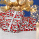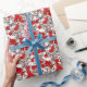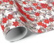 Espadilhas de flores vermelhas chinesas e folhas de cinza prateada macia sobre fundo branco - arte digital
