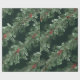 Um papel elegante e sofisticado de embalagem de férias, que inclui pinheiros brancos e terras verdes do ramo das árvores de corrida, com amoras de ilex vermelhas na diagonal, contra um fundo verde de florestas de pinheiros profundos.