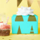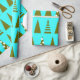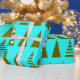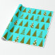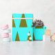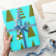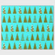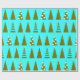 Um padrão moderno de árvores geométricas brancas, algumas com ornamentos brancos de neve... tudo sobre um fundo azul aqua.